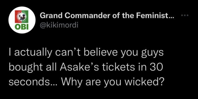 Two minutes everywhere don burst o,” has become the case of Asake’s 02 Academy show as his tickets sell out within two minutes, leaving behind a trail of mixed reactions. See what people had to say about Asake’s feat below.